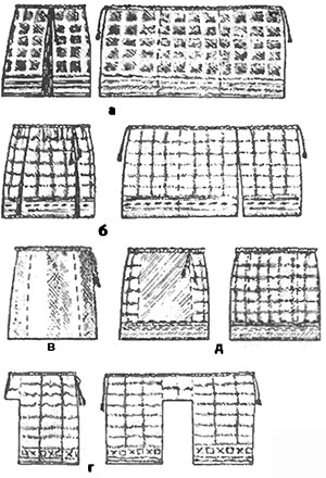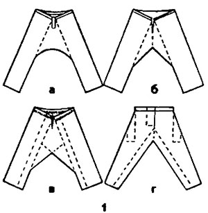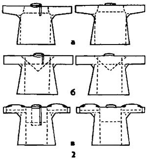 б — с косыми бочками и подоплёкой, пришитой по косой;