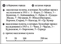 Скорее всего, названные выше деревни не исчерпывают список марийских поселений Бирского уезда, посещенных Хольмбергом в 1913 г. Туманным остается и то, сколько недель он здесь провел среди восточных марийцев. Можно лишь заключить, что это было в июне и, вероятно, также в июле. Неизвестно также, когда и каким путем он добрался из Бирского уезда в Уржумский уезд Вятской губернии, ко второй группе обследованных им марийцев.