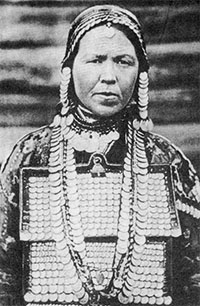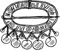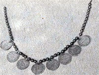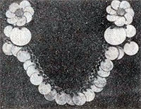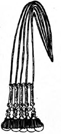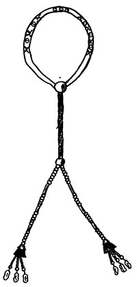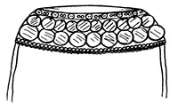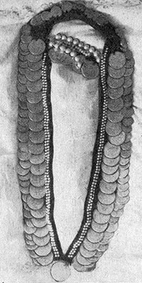 Шейные и нагрудные украшения состояли главным образом из монет, бисера, пуговиц, раковин каури.