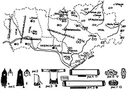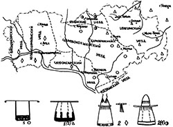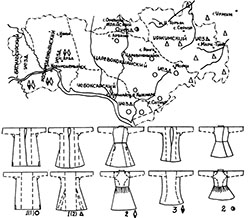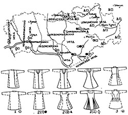 Карта б. Территориальное распространение комплексов женской народной одежды.