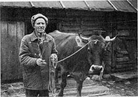 Благословение коровы иконой и солью в Егорьев день. Смоленская обл., Велижский р-н д. Шумилово. 1983