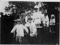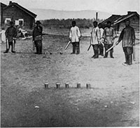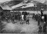 Катание на качелях и игра в чехарду. Томская губ., Змеиногорский у., д. Быково. 1914