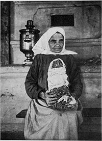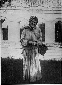 Нищенка около ограды кладбища в Радуницу. Владимирская губ. 1914
